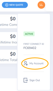 - Access the My Account tab by going to the top right corner of your portal. Click on your initials and then select My Account.