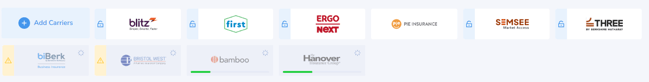 The carriers that are not grayed out you have access to and can click to bridge to their quoting platforms! If you see a padlock icon that means that this carrier is one of our no password required carriers.