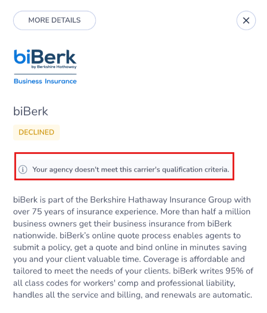 Your agency doesn't meet this carrier's qualification criteria